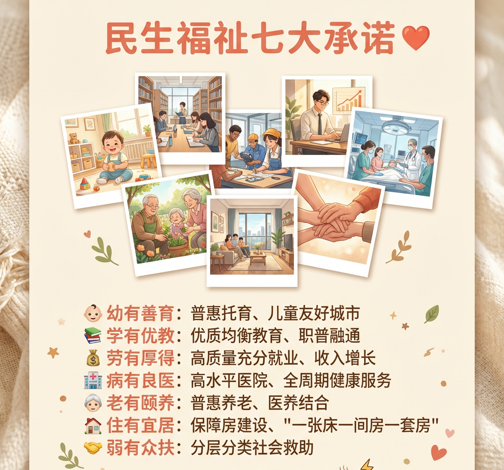 ——民生福祉取得新成效。高质量充分就业取得新进展,居民收入增长和经济增长同步、劳动报酬提高和劳动生产率提高同步,分配结构得到优化,公共服务更加高品质、多样化、便利化,社会保障体系更加完善,人的全面发展空间更加广阔,人民对美好生活的向往不断实现。