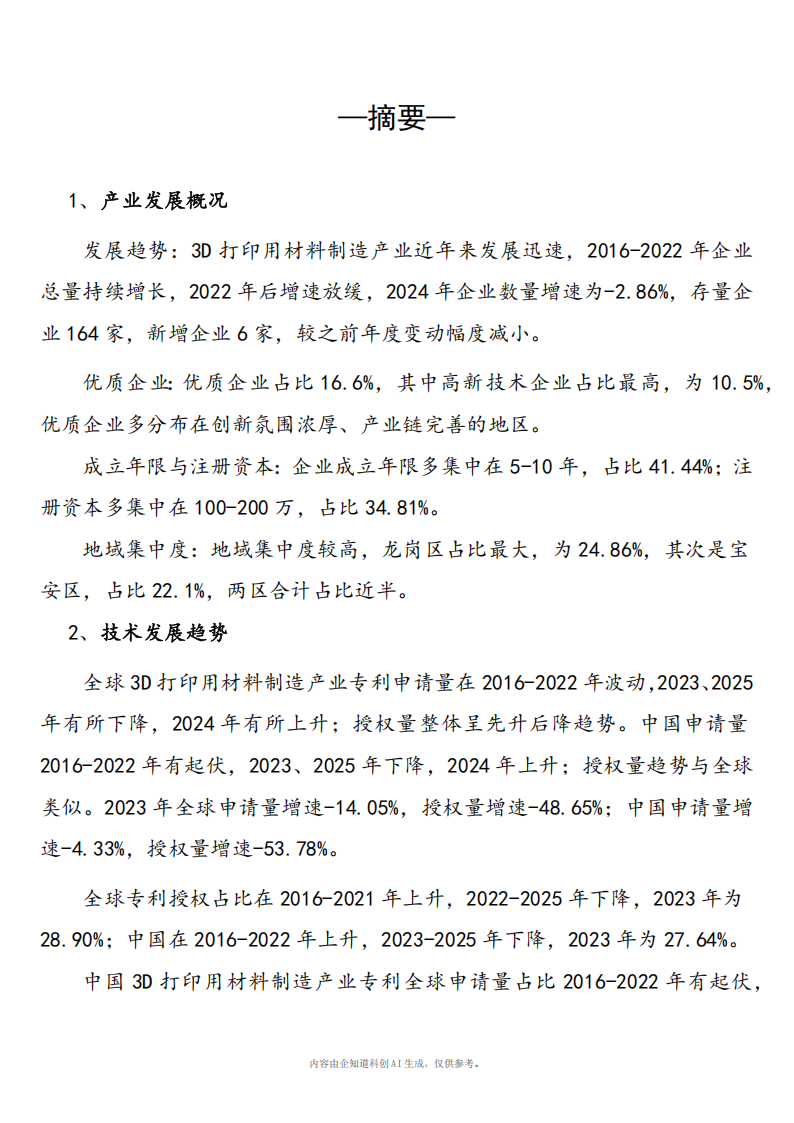 3D打印用材料制造产业分析报告